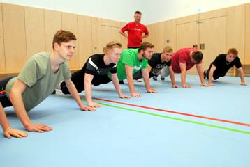 Mit der Übergabe des neuen Sportraums in der ehemaligen Pritzwalker Tuchfabrik wurde die Möglichkeit geschaffen, ein zweites Mal in der Woche den Sportunterricht durchzuführen. Die regelmäßige Nutzung dieser Sporteinrichtung begann am Dienstag den 14.11.2017. An diesem Tag war es die Klasse WZM 17 II (siehe Foto), die als Erste den Sportraum nutzte und bei Stabilisierungsübungen zu sehen ist.
